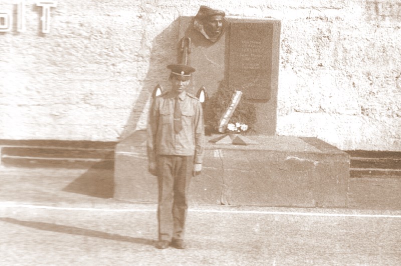 На снимке: замполит нашей части майор Евгений Мартынович Новицкий у памятника краснофлотцу Романову в расположении 130 бригады противолодочных кораблей, Ара-Губа,середина 80-х годов XX века. На этом самом месте мы принимали присягу в день военно-морского флота.