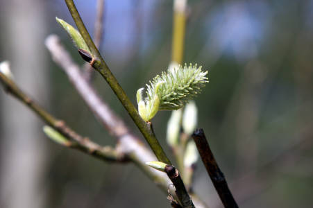 На этот раз пробуждние природы в родных деревенских краях чуть-чуть запоздало по сравнению с прошлым годом — тёмных цветов и оттенков в лесах и на полях пока пока больше, чем светлых, но уже пробиваются из-под прошлогодней травы свежие ростки, а на ветках раскрываются почки.