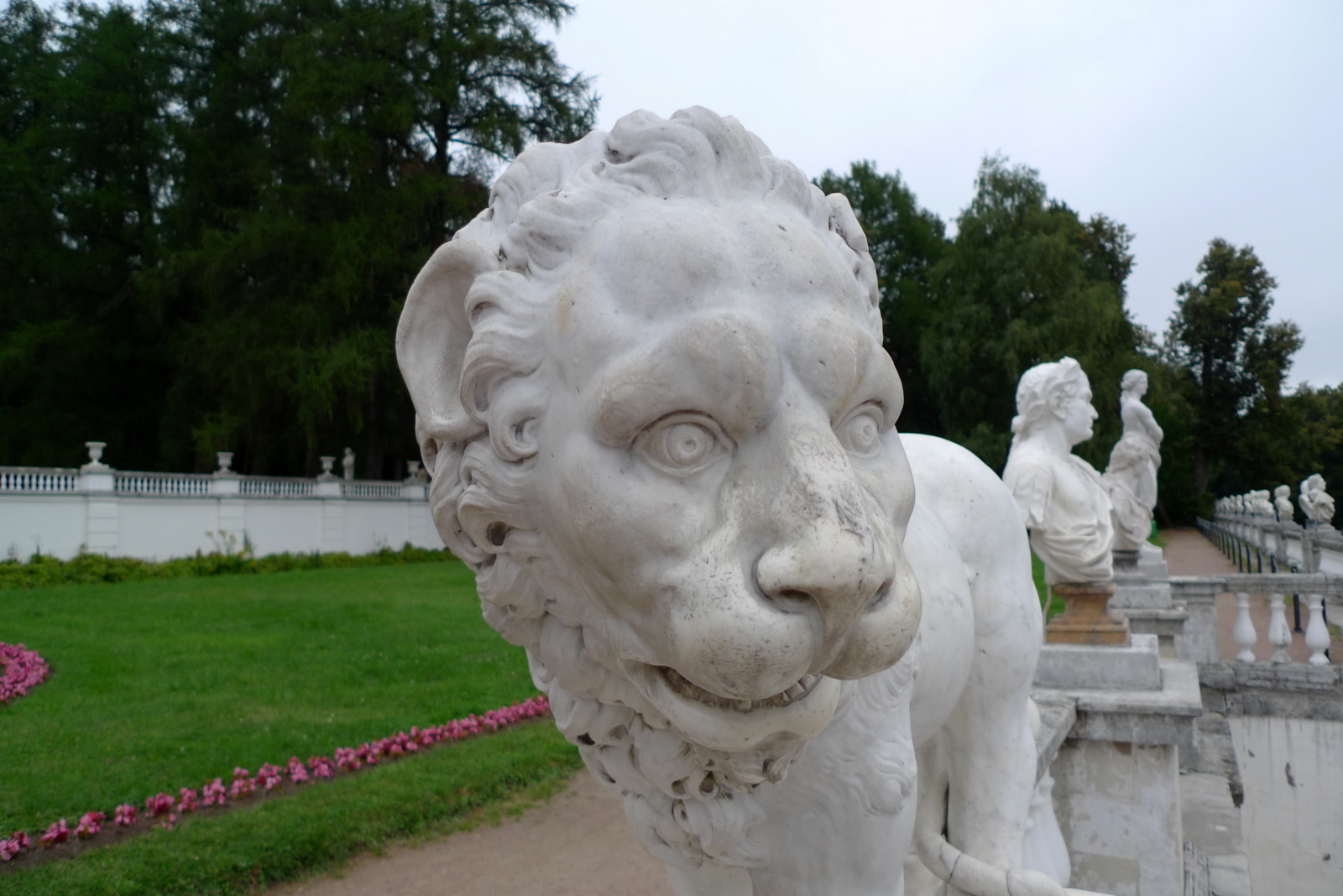 Помимо цветов, в кадр попала и всякая живность навроде львов и уток... Лев смотрит в сторону старого русла Москва-реки, где прямо у воды люди кормят хлебом уток. А вот льву никто и куса мяса не предложит... А ведь ему тоже кушать хочется, даром что мраморный!
