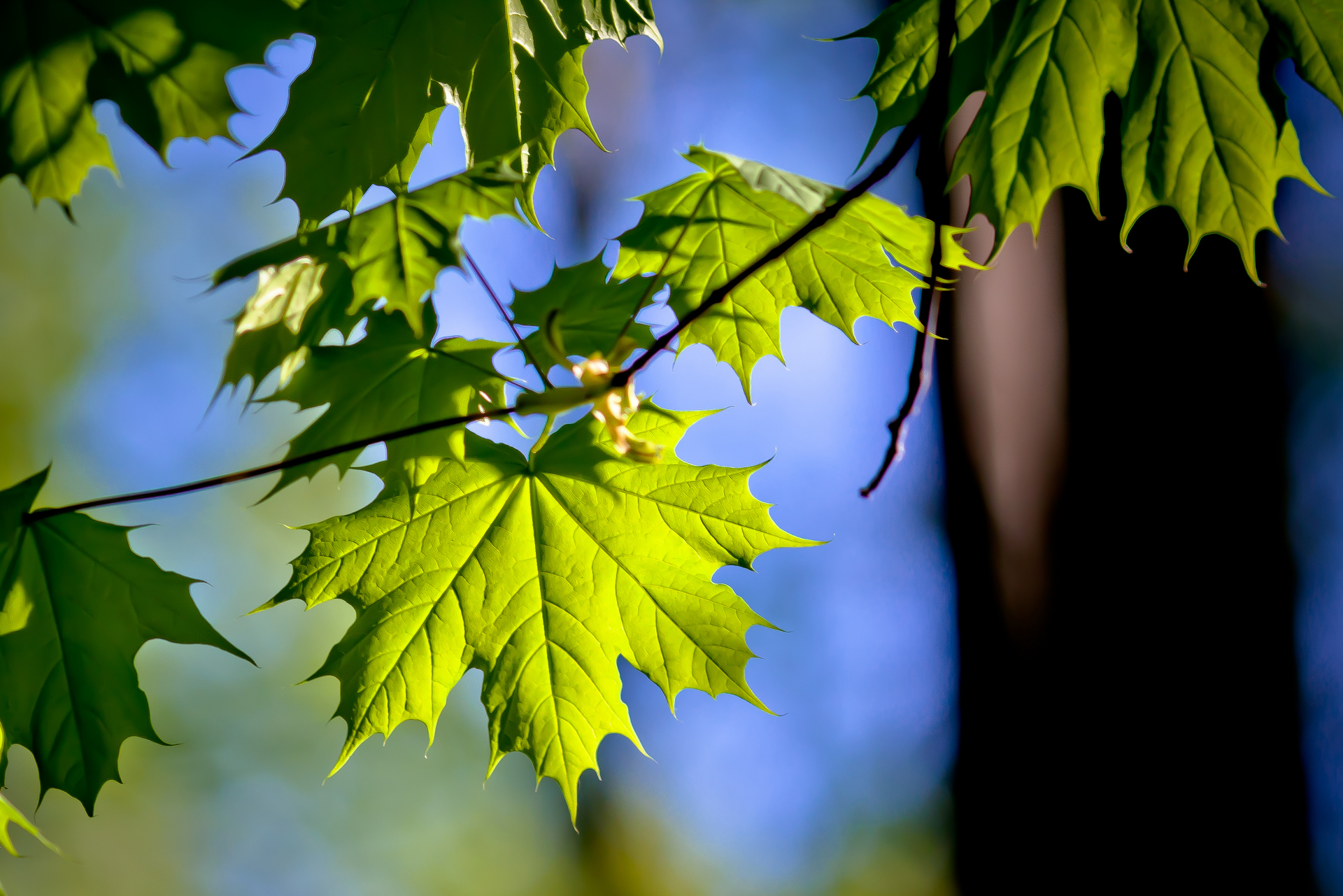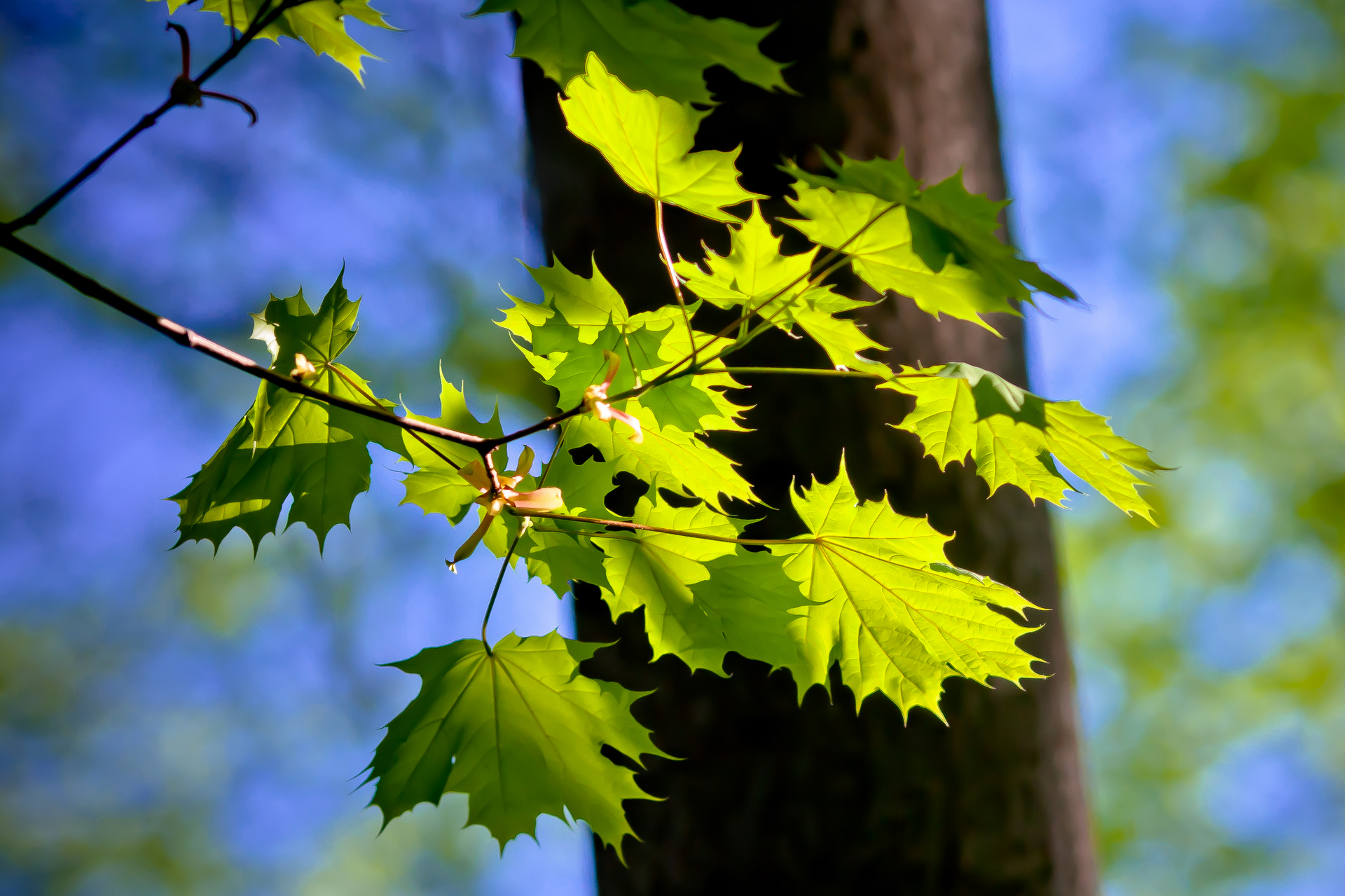 Всего две недели прошло с того, как стали раскрываться первые почки на ветках, а молодые листья уже набрали силу и радуют яркостью цвета и незапыленностью.